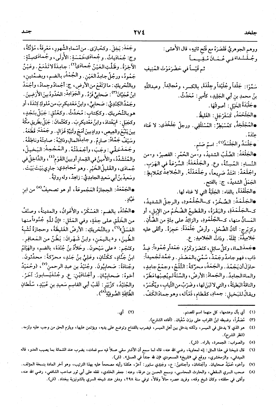 والجَوَامِدُ: الحُدُودُ بينَ الأَرَضينَ. وجَمْدٌ الكِنْدِيُّ: صَحابِيٌّ، وابنُ مَعْديكرِبَ من مُلوكِ كِنْدَةَ، أو هو بالتَّحْريكِ. وككِتابٍ: مُحَدِّثٌ. وكعُنُقٍ: جَبَلٌ بنَجْدٍ،