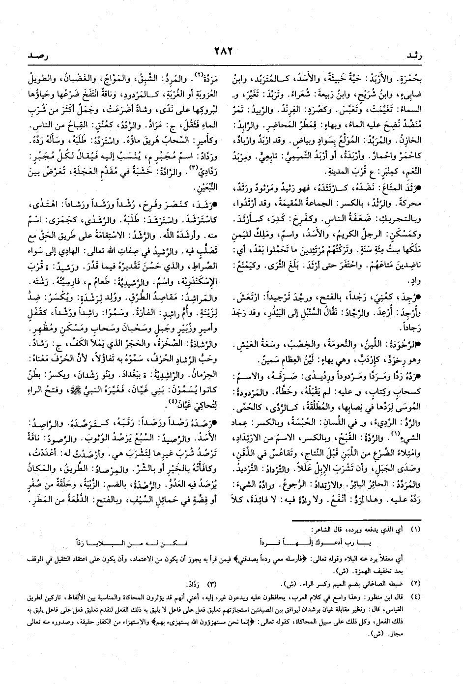 والرَّصودُ: ناقَةٌ تَرْصُدُ شُرْبَ غيرِها لِتَشْرَبَ هي.