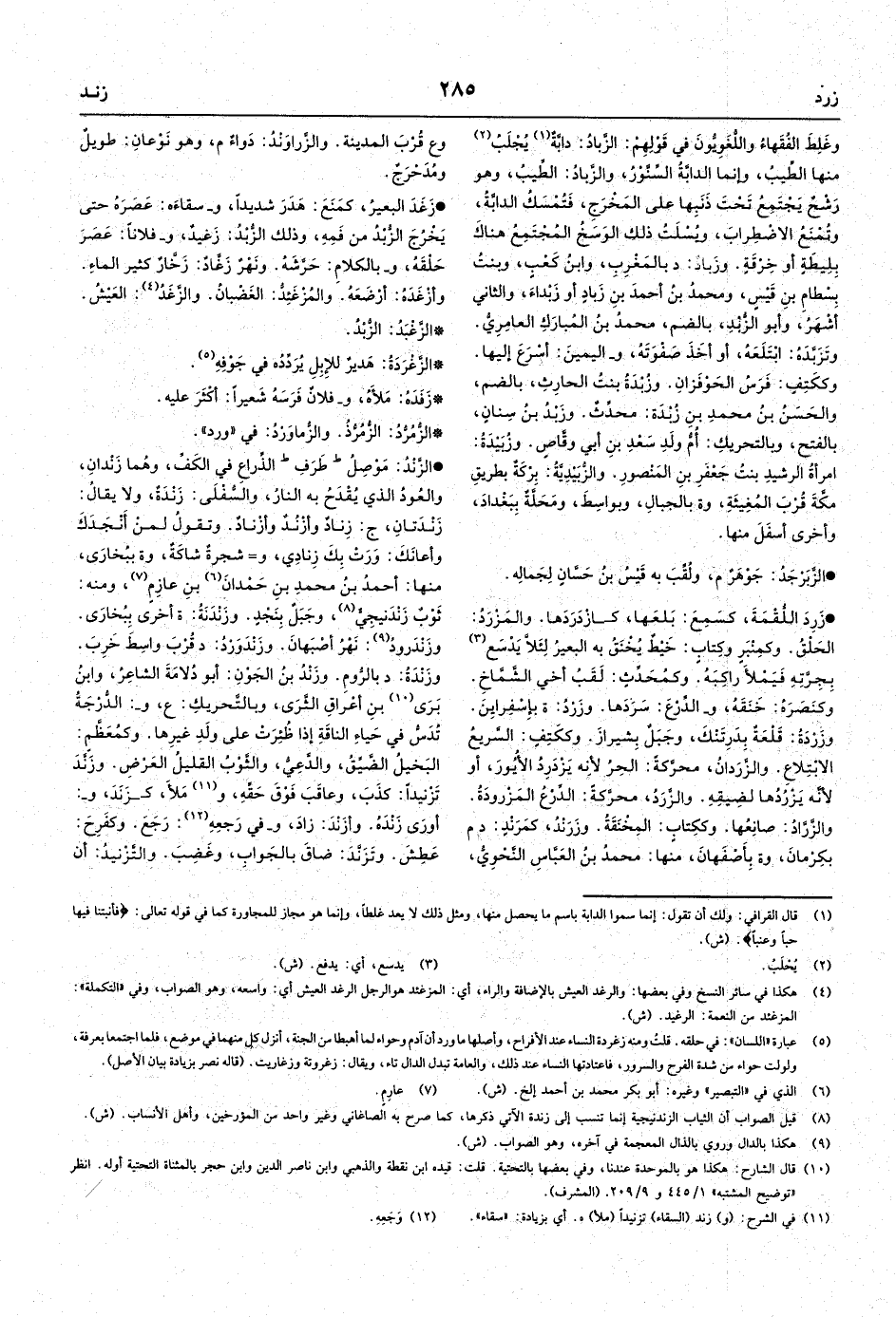 وزَنْدَةُ: د بالرُّومِ. وزَنْدُ بنُ الجَوْنِ: أبو دُلامَةَ الشاعِرُ، وابنُ بَرَى بنِ أعْراقِ الثَّرَى،