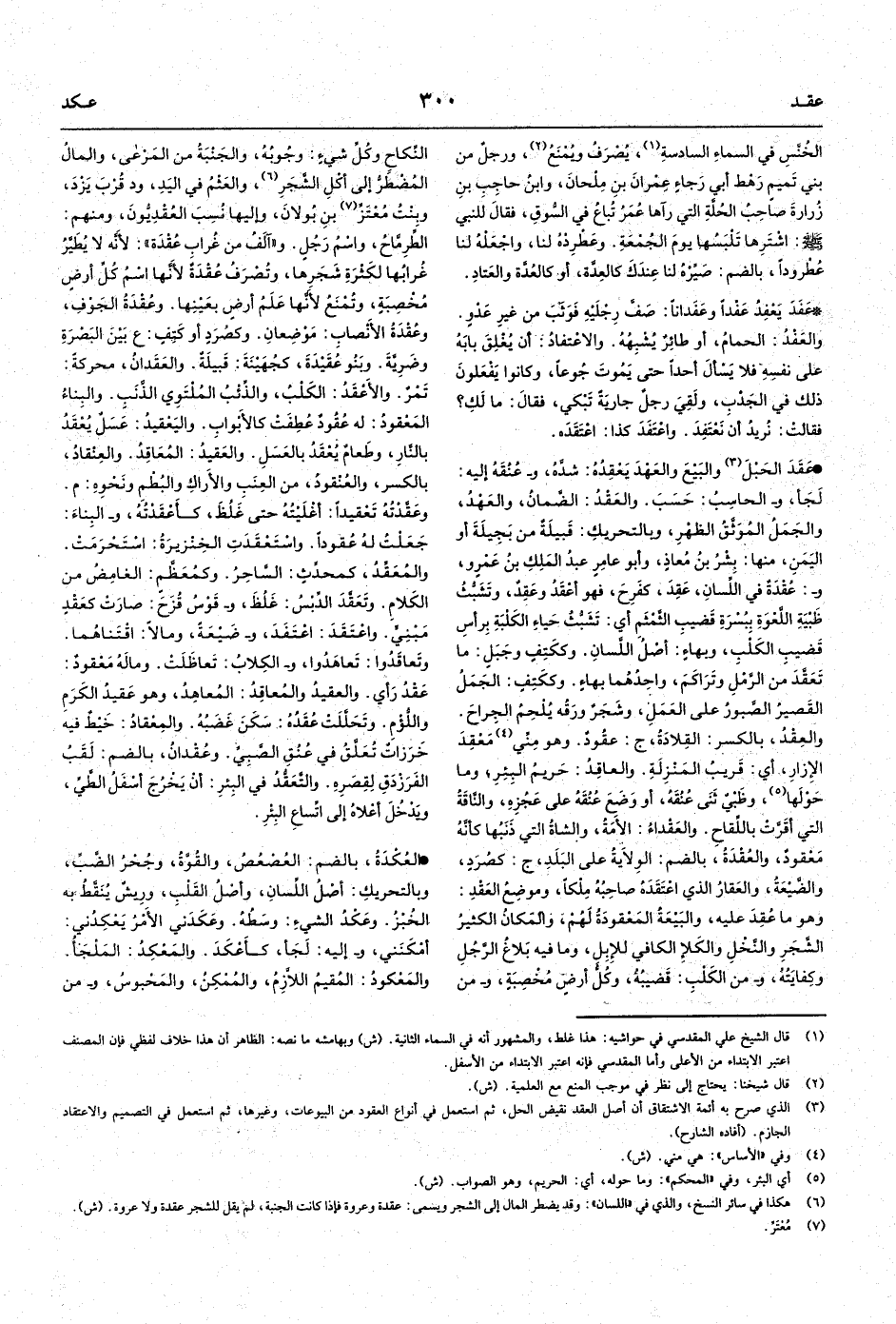 وموضِعُ العَقْدِ: وهو ما عُقِدَ عليه، والبَيْعَةُ المَعْقودَةُ لَهُمْ، والمَكانُ الكثيرُ الشَّجَرِ والنَّخْلِ والكَلإٍ الكافي للإِبِلِ، وما فيه بَلاغُ الرَّجُلِ وكِفايَتُهُ،