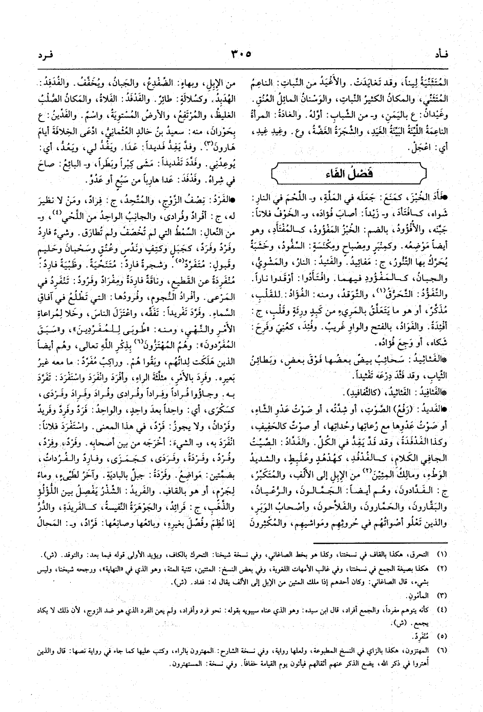 • الفَرْدُ: نِصْفُ الزَّوْجِ، والمُتَّحِدُ، ج: فِرادٌ، ومَنْ لا نظيرَ له، ج: أفْرادٌ وفُرادى، والجانِبُ الواحِدُ من اللَّحْي،