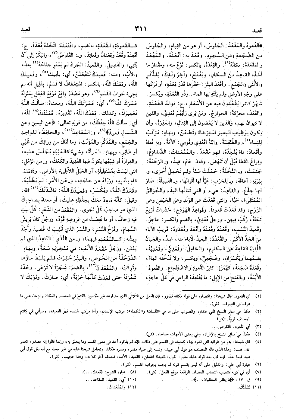 • القُعودُ والمَقْعَدُ: الجُلوسُ، أو هو من القِيامِ، والجُلُوسُ من الضَّجْعَةِ ومن السُّجودِ.