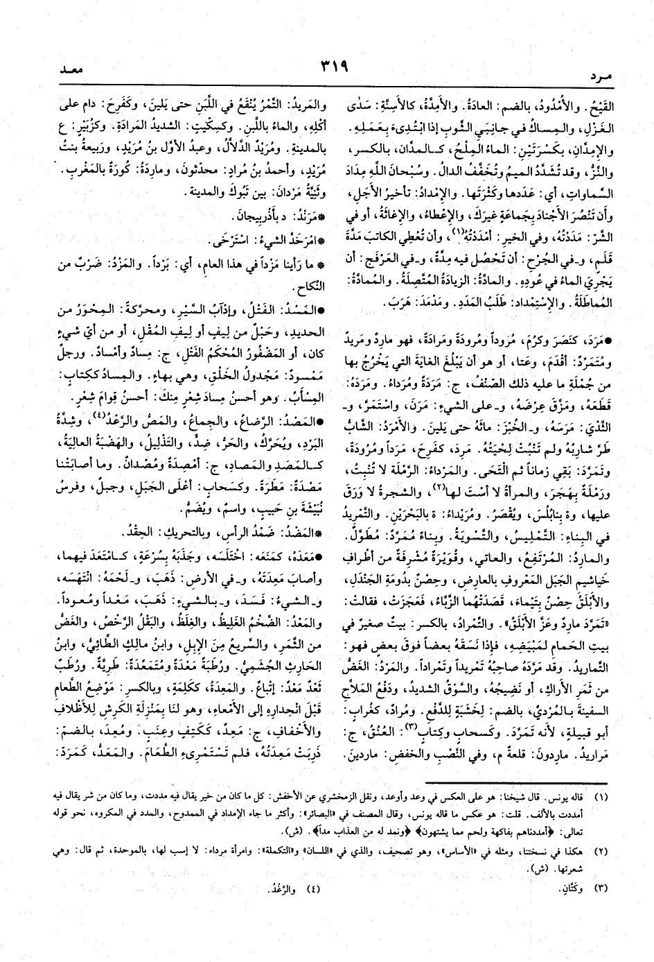 فهو مارِدٌ ومَريدٌ ومُتَمَرِّدٌ: أقْدَمَ، وعَتا، أو هو أن يَبْلُغَ الغايَةَ التي يَخْرُجُ بها من جُمْلَةِ ما عليه ذلك الصِّنْفُ، ج: مَرَدَةٌ ومُرَداءُ.