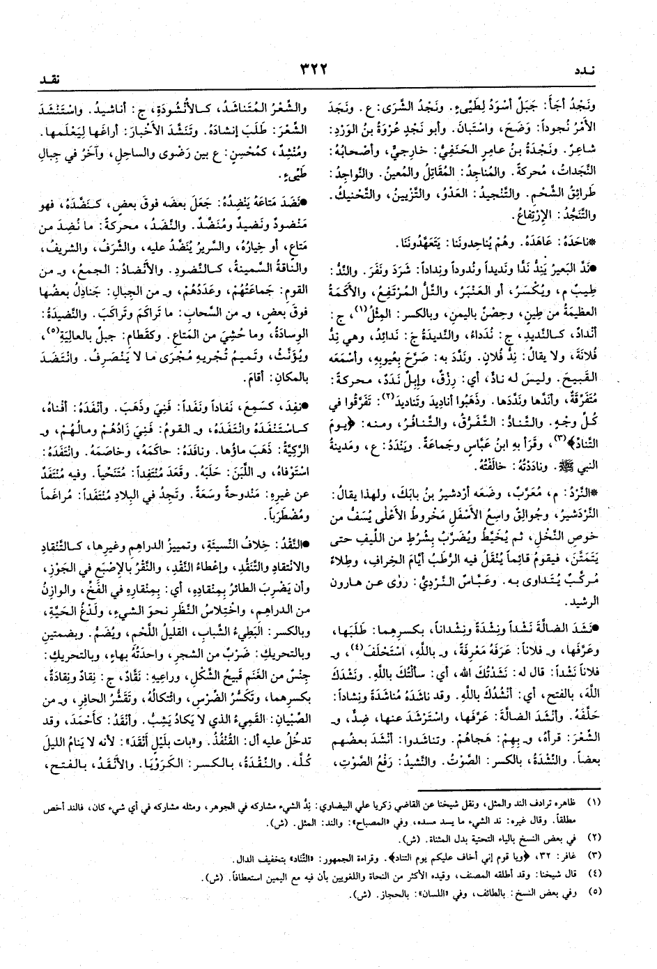• نَدَّ البَعيرُ يَنِدُّ نَدًّا ونَديداً ونُدوداً ونِداداً: شَرَدَ ونَفَرَ.