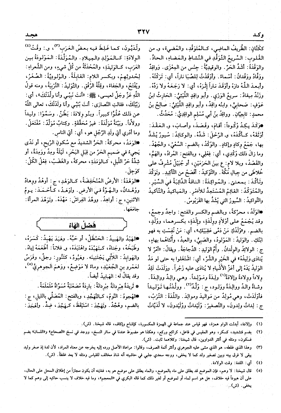 • الوَلَدُ، محرَّكةً، وبالضم والكسر والفتح: واحِدٌ وجمعٌ، وقد يُجْمَعُ على أوْلادٍ ووِلْدَةٍ، وإلْدَةٍ، بكسرهما، ووُلْدٍ، بالضم.