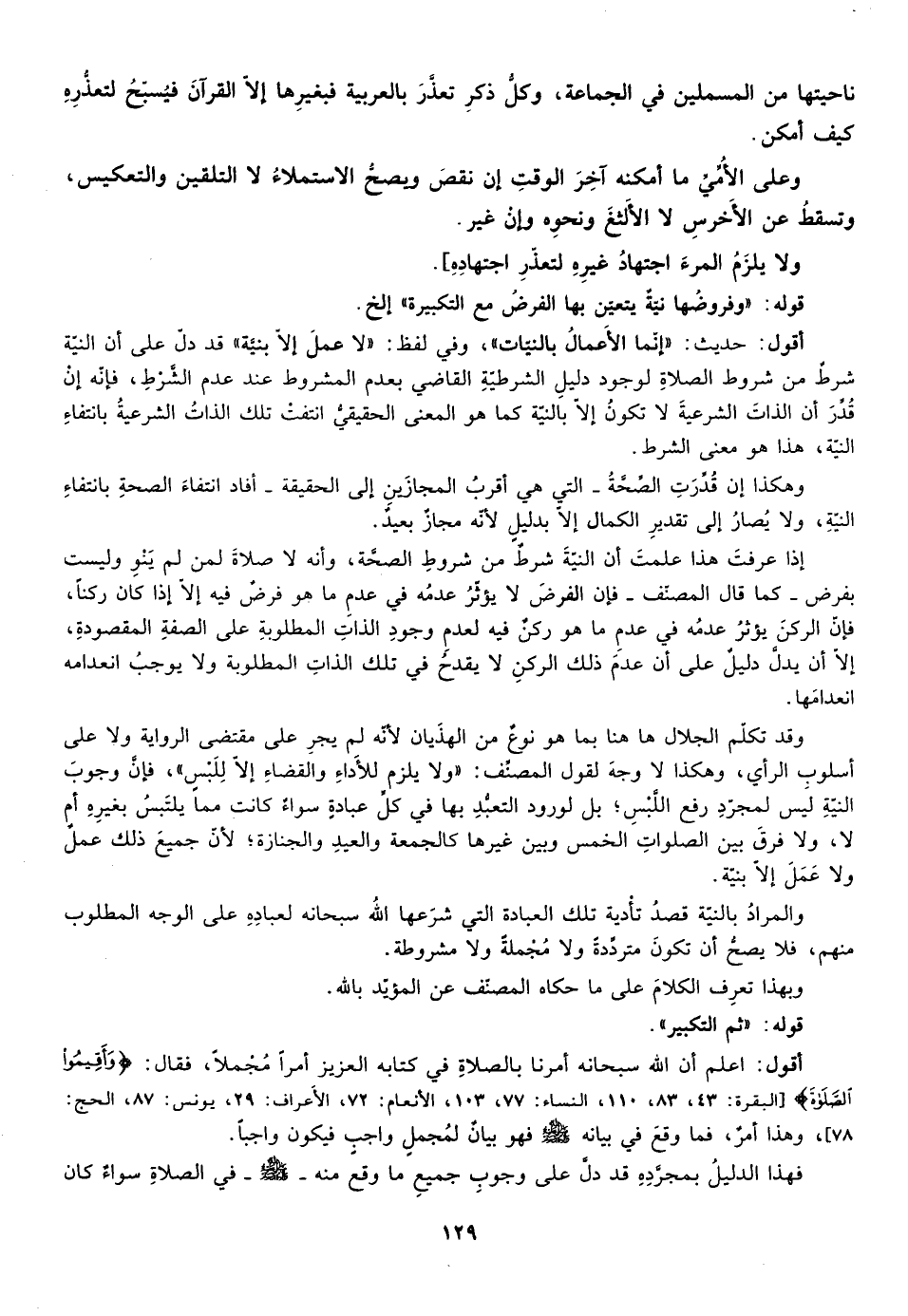 أقول: حديث: "إنما الأعمال بالنيات" وفي لفظ: "لا عمل إلا بنية " قد دل على أن النية شرط من شروط الصلاة لوجود دليل الشرطية القاضي بعدم المشروط عند عدم الشرط فإنه إن قدر أن الذات الشرعية لا تكون إلا بالنية كما هو المعنى الحقيقي انتفت تلك الذات الشرعية بانتفاء النية وهذا هو معنى الشرط.