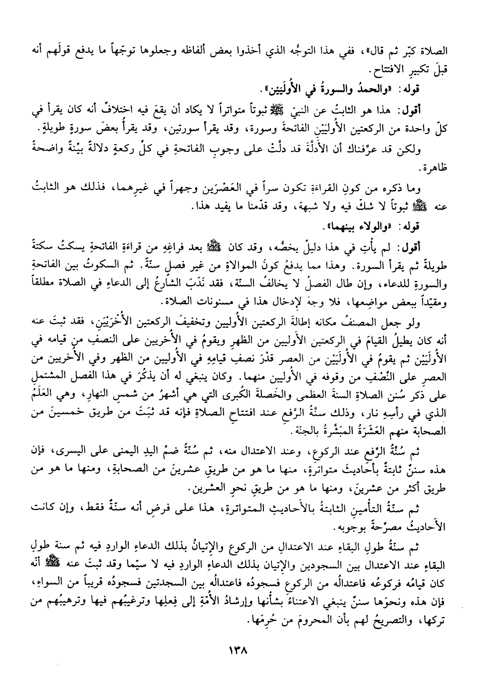 ثم سنة الرفع عند الركوع وعند الاعتدال منه ثم سنة ضم اليد اليمنى على اليسرى فإن هذه سنن ثابتة بأحاديث متواترة منها ما هو عن طريق عشرين من الصحابة ومنها ما هو اكثر من طريق عشرين ومنها ما هو من طريق نحو العشرين.