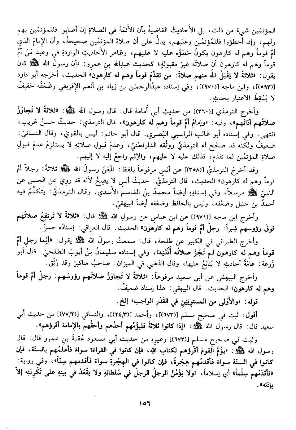وقد أخرج الترمذي ["358"] ، عن أنس مرفوعا بلفظ: لعن رسول الله صلى الله عليه وسلم ثلاثة رجلا أم قوما وهم له كارهون الحديث قال الترمذي حديث أنس لا يصح لأنه قد روي عن الحسن عن النبي صلى الله عليه وسلم مرسلا وفي إسناده أيضا محمد بن القاسم الأسدي قال الترمذي يتكلم فيه أحمد بن حنبل وضعفه وليس بالحافظ وضعفه أيضا البيهقي.