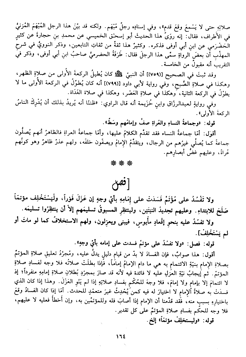 قوله: فصل: "ولا تفسد على مؤتم فسدت على إمامه بأي وجه".