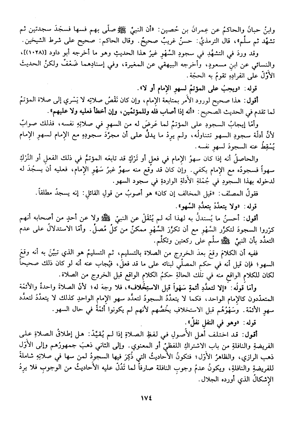 أقول: قد اختلف أهل الأصول في لفظ الصلاة إذا لم يقيد هل إطلاق الصلاة على الفريضة والنافلة من باب الاشتراك اللفظي أو المعنوي وإلي الثاني ذهب جمهورهم وإلي الأول ذهب الرازي والظاهر الأول فتكون الأحاديث التي ذكر فيها السجود لمن سها في صلاته شاملة للفريضة والنافلة ويكون عدم وجوب النافلة صارفا لما تدل عليه الأحاديث من الوجوب فلا يرد الاشكال الذي أورده الجلال.