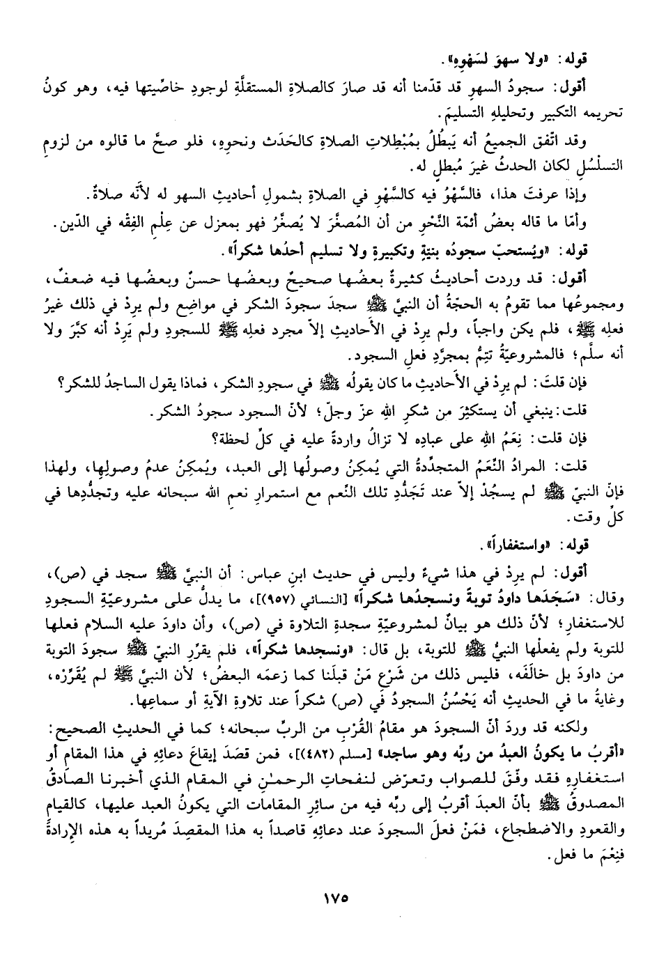 فإن قلت لم يرد في الأحاديث ما كان يقوله صلى الله عليه وسلم في سجود الشكر فمإذا يقول الساجد للشكر.