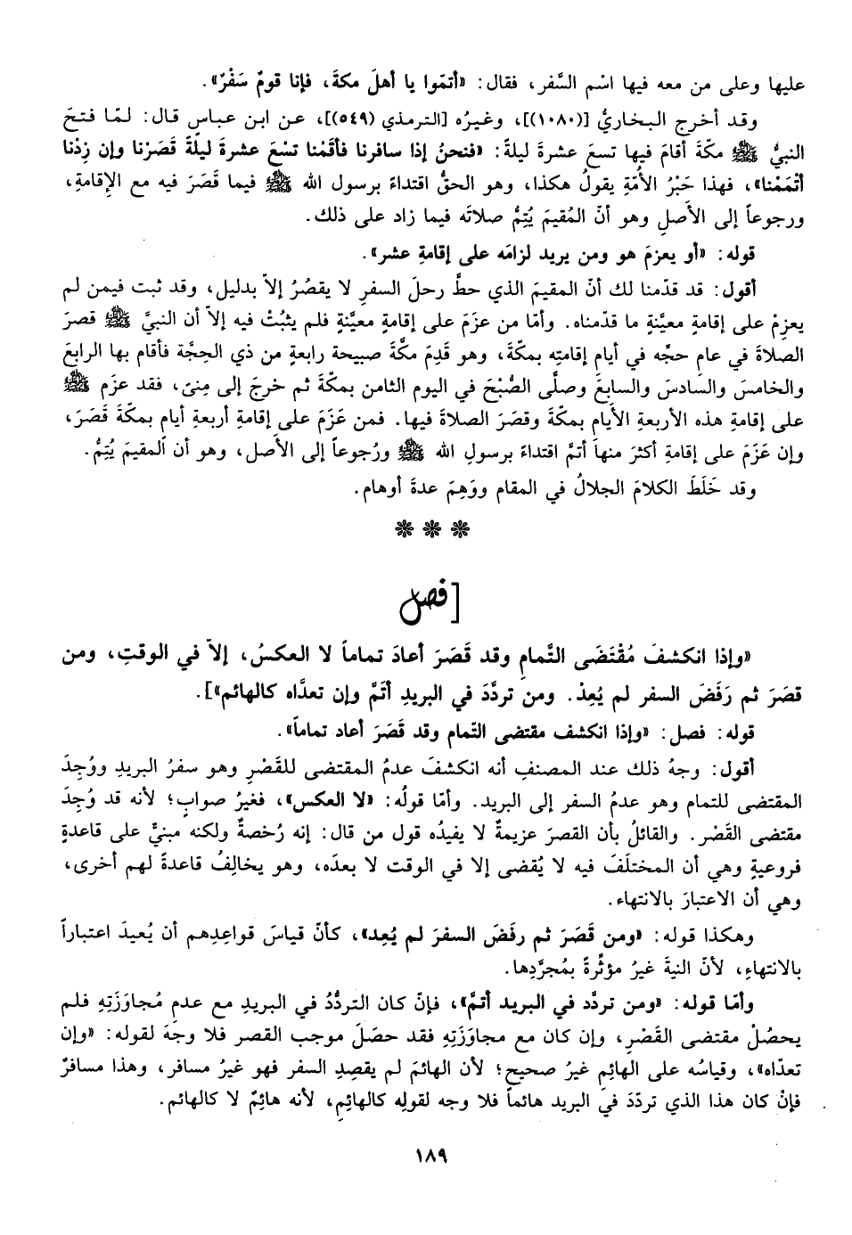 "وإذا انكشف مقتضى التمام وقد قصر اعاد تمأما لا العكس إلا في الوقت ومن قصر ثم رفض السفر لم يعد ومن تردد في البريد أتم وإن تعداه كالهائم"] .