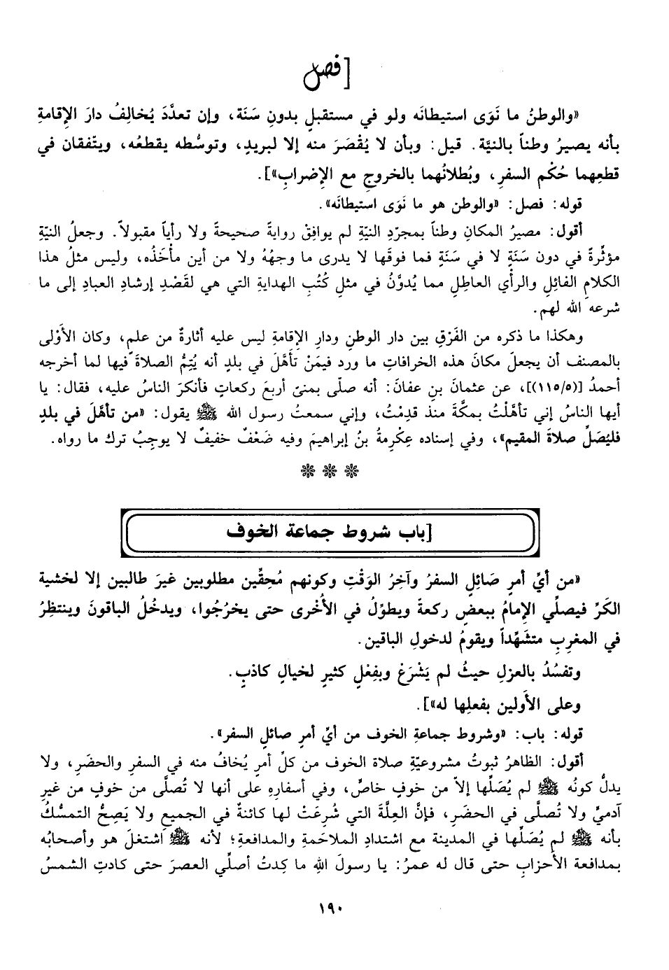 قوله: باب: "وشروط جماعة الخوف من أي أمر صائل السفر".