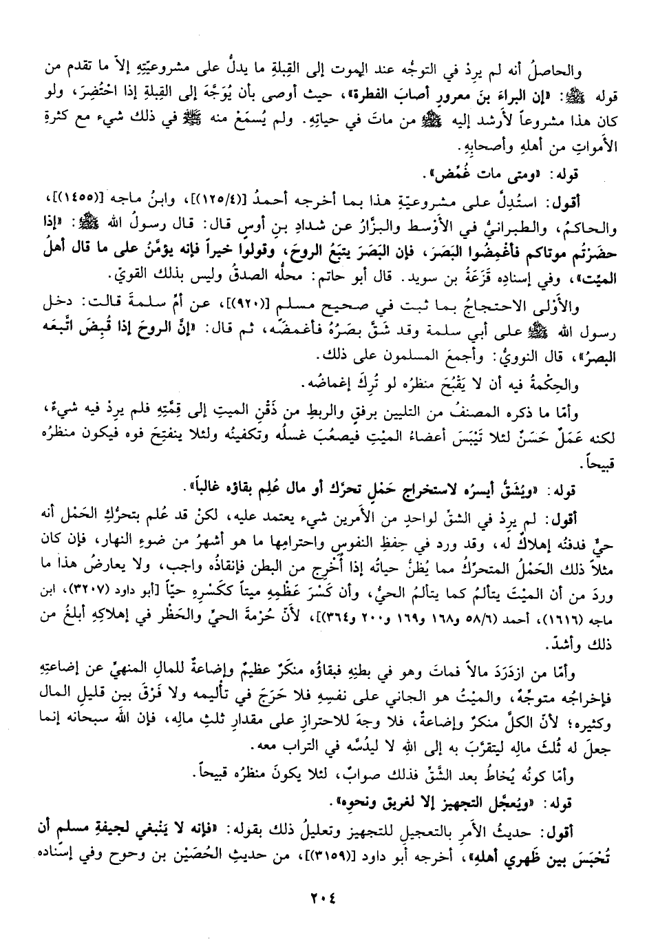 أقول: حديث الأمر بالتعجيل للتجهيز وتعليل ذلك بقوله: "فإنه لا ينبغي لجيفة مسلم أن تحبس بين ظهري أهله" أخرجه أبو دأود ["3159"] ، من حديث الحصين بن وحوح وفي إسناده