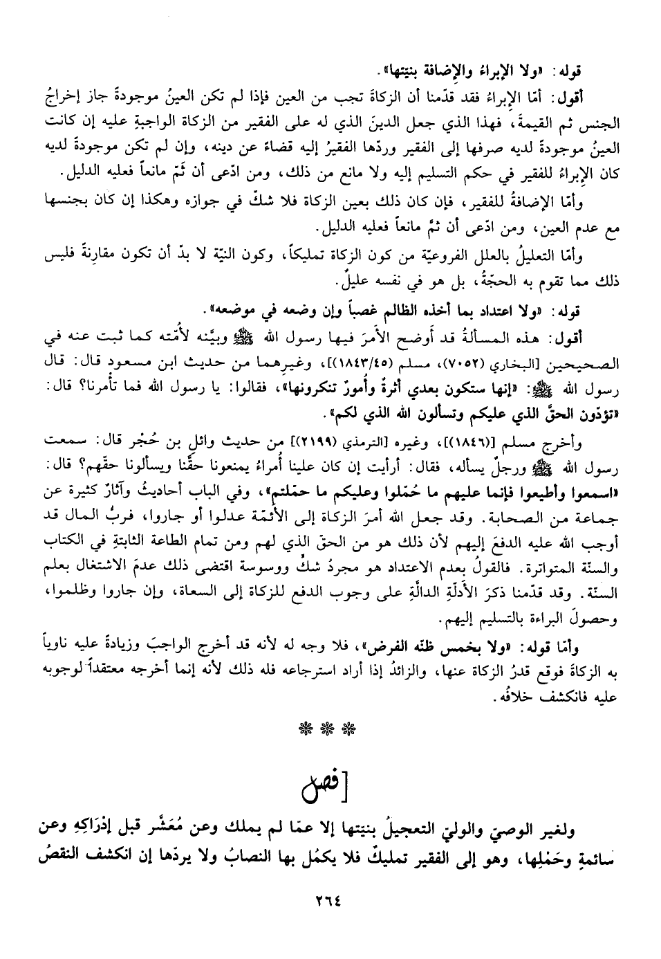 وأخرج مسلم ["1846"] وغيره [الترمذي "2199"] من حديث وائل بن حجر قال سمعت رسول الله صلى الله عليه وسلم ورجل يسأله فقال أرأيت ان كان علينا امراء يمنعون حقنا ويسألون حقهم قال: "اسمعوا واطيعوا فإنما عليهم ما حملوا وعليكم ما حملتم"، وفي الباب أحاديث واثار كثيرة عن جماعة من الصحابة وقد جعل الله أمر الزكاة إلي الائمة عدلوا أو جاروا فرب المال قد أوجب الله عليه الدفع اليهم لان ذلك هو من الحق الذي لهم ومن تمام الطاعة الثابتة في الكتاب والسنة المتواترة فالقول بعدم الاعتداد هو مجرد شك ووسوسة اقتضى ذلك عدم الاشتغال بعلم السنة وقد قدمنا ذكر الادلة الدالة على وجوب الدفع للزكاة إلي السعاة وان جاروا وظلموا وحصول البراءة بالتسليم اليهم.