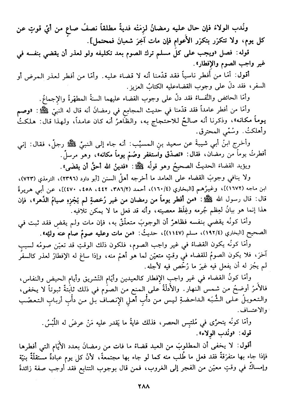 قوله: فصل: "ويجب على كل مسلم ترك الصوم بعد تكليف ولو لعذر ان يقضى بنفسه في غير واجب الصوم والافطار".