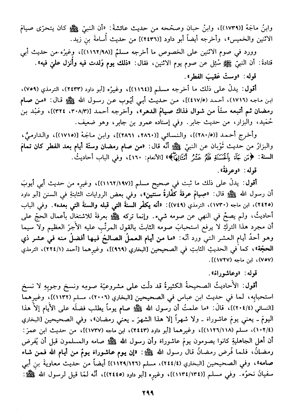 أقول: الاحاديث الصحيحة الكثيرة قد دلت على مشروعية صومه ونسخ وجوبه لا نسخ استحبابه لما في حديث ابن عباس في الصحيحين وغيرهما قال: ما علمت أن رسول الله صلى الله عليه وسلم صام يوما يطلب فضله على الايام الا هذا اليوم يعني يوم عاشوراء ولاشهرا الا هذا الشهر يعني رمضان وفي الصحيحين وغيرهما من حديث ابن عمر ان أهل الجأهلية كانوا يصومون يوم عاشوراء وان رسول الله صلى الله عليه وسلم صامه والمسلمون قبل ان يفرض رمضان فلما فرض رمضان قال رسول الله صلى الله عليه وسلم: "أن يوم عاشوراء يوم من أيام الله فمن شاء صامه"، وفي الصحيحين أيضا من حديث معأوية بن أبي سفيان نحوه وفي مسلم وغيره انه لما قيل لرسول الله صلى الله عليه وسلم:
