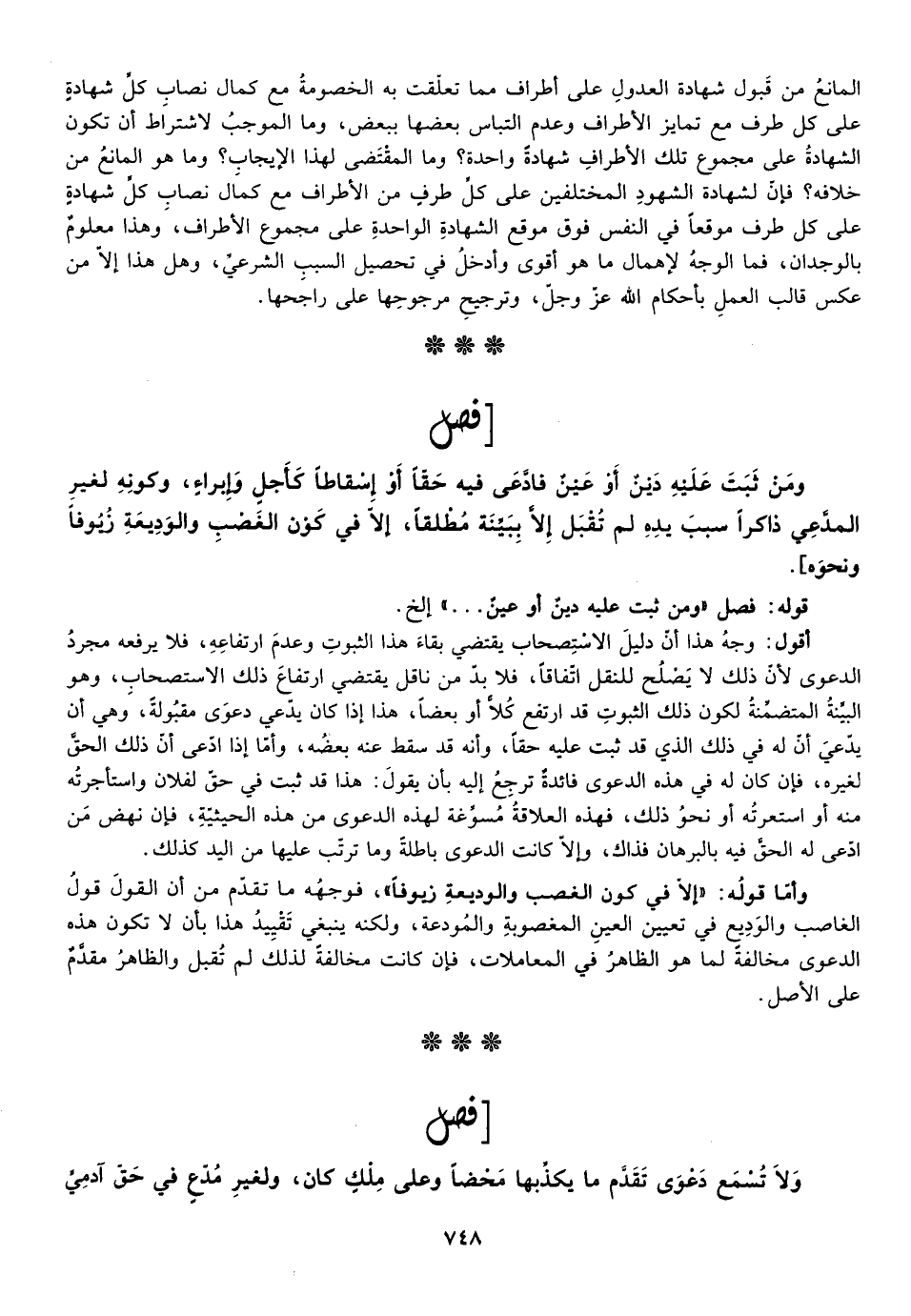 المانع من قبول شهادة العدول على أطراف مما تعلقت به الخصومة مع كمال نصاب كل شهادة على كل طرف وما الموجب لاشتراط أن تكون الشهادة على مجموع تلك الأطراف شهادة واحدة وما المقتضى لهذا الإيجاب وما هو المانع من خلافه فإن لشهادة الشهود المختلفين على كل طرف من الأطراف مع كمال نصاب كل شهادة على كل طرف موقعا في النفس فوق موقع الشهادة الواحدة على مجموع الأطراف وهذا معلوم بالوجدان فما الوجه لإهمال ما هو أقوى وأدخل في تحصيل السبب الشرعي وليس هذا الأمر عكس قالب العمل بأحكام الله عزوجل وترجيح مرجوحها على راجحها.