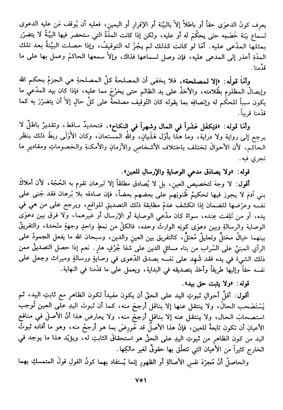 وأما قوله: "إلا لمصلحة" فلا يخفى أن المصلحة كل المصلحة هي الجزم بحكم الله وإيصال المظلوم بظلامته والأخذ على يد الظالم حتى يخرج مما عليه فإذا كان بيد المدعي ما يكون سببا للحكم له وإنصافه بما يقوله كان التوقيت مصلحة على كل حال إلا أن يتضرر به كما قدمنا قريبا.