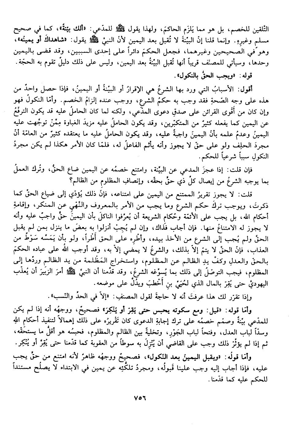 أقول: الأسباب التي ورد بها الشرع الإقرار أو البينة أو اليمين فإذا حصل واحد من هذه على وجه الصحة فقد وجب به حكم الشرع ووجب عنده إلزام الخصم وأما النكول فهو إن كان من أقوى القرائن على صدق دعوى المدعي ولكن لما كان الحامل عليه قد يكون الترفع عن اليمين كما يفعله كثير من المتكبرين وقد يكون الحامل عليه مزيد الغباوة ممن توجهت عليه اليمين وعدم علمه بأن اليمين واجبه عليه وقد يكون الحامل عليه ما يعتقده كثير من العامة أن مجرد الحلف ولو على حق لا يجوز وأنه يأثم الفاعل له فلما كان الأمر هكذا لم يكن مجرد النكول سببا شرعيا للحكم.