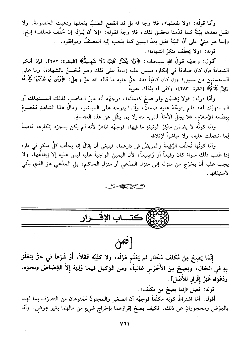 أقول: وجهه قول الله سبحانه: {وَلا يُضَارَّ كَاتِبٌ وَلا شَهِيدٌ} [البقرة: 283] ، فإذا أنكر الشهادة فإن كان صادقا في إنكاره فليس عليه زيادة على ذلك وهو محسن بالشهادة وما على
