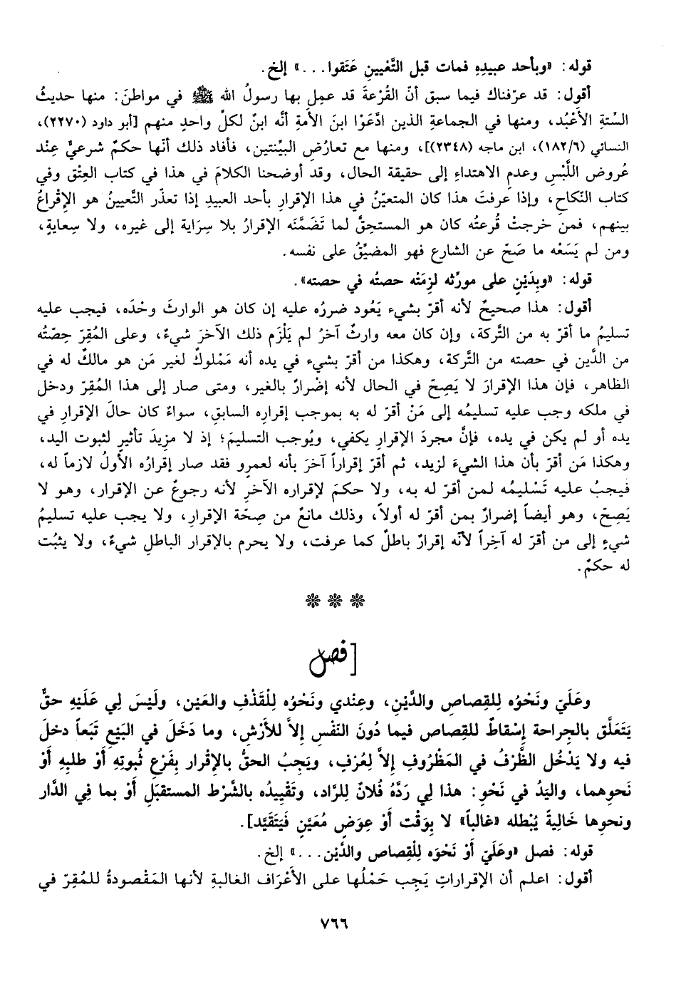 وعلي ونحوه للقصاص والدين وعندي ونحوه للقذف والعين وليس لي عليه حق يتعلق بالجراحة إسقاط للقصاص فيما دون النفس إلا للأرش وما دخل في البيع تبعا دخل فيه ولا يدخل الظرف في المظروف إلا لعرف ويجب الحق بالإقرار بفرع ثبوته أو طلبه أو نحوهما واليد في نحو هذا لي رده فلان للراد وتقييده بالشرط المستقبل أو بما في الدار ونحوها خالية يبطله غالبا لا بوقت أو عوض معين فيتقيد] .