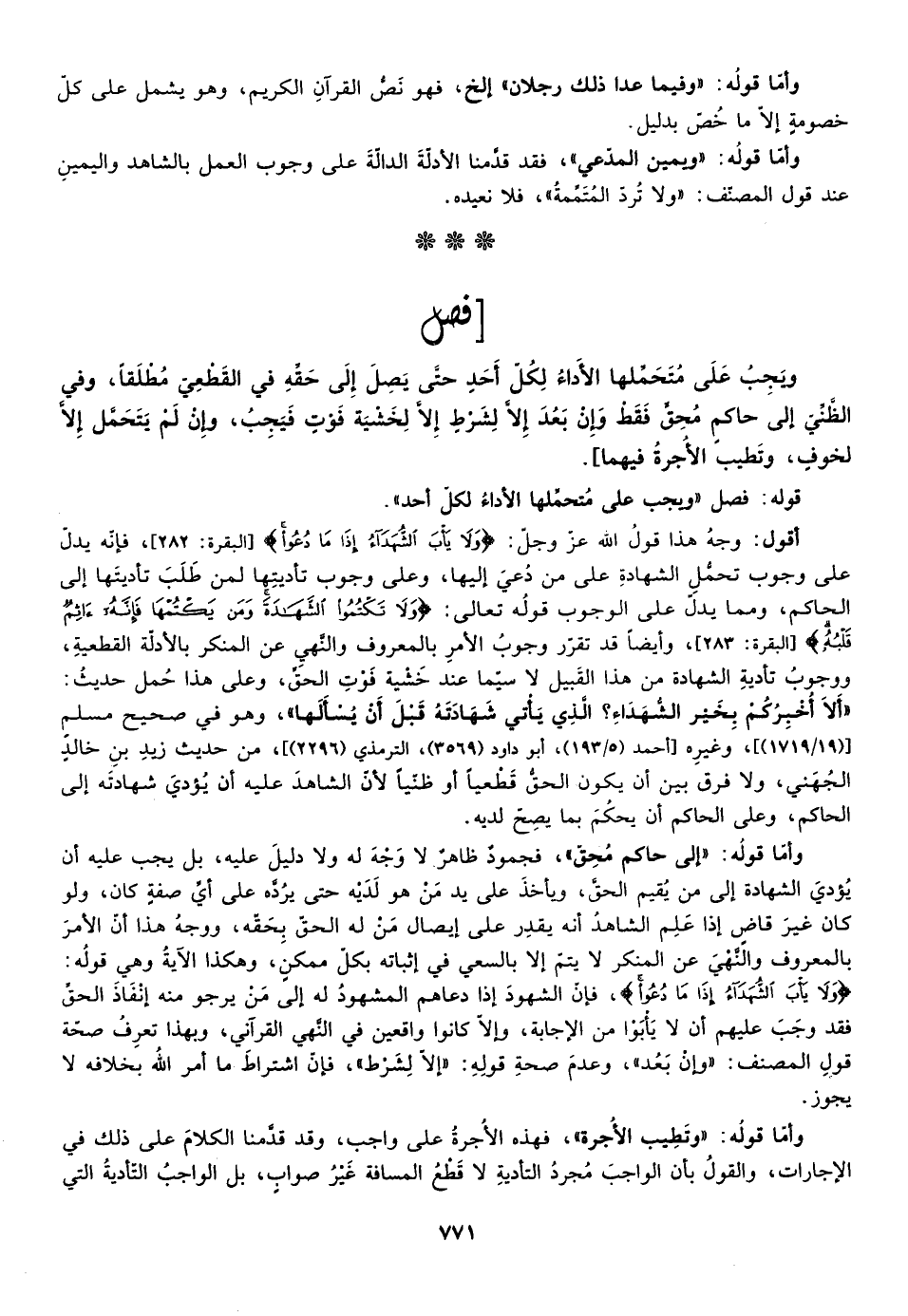 أقول: وجه هذا قول الله عزوجل: {وَلا يَأْبَ الشُّهَدَاءُ إِذَا مَا دُعُوا} [البقر: 282] ، فإنه يدل على وجوب تحمل الشهادة على من دعي إليها وعلى وجوب تأديتها لمن طلب تأديتها إلى الحاكم ومما يدل على الوجوب قوله تعالى: {وَلا تَكْتُمُوا الشَّهَادَةَ وَمَنْ يَكْتُمْهَا فَإِنَّهُ آثِمٌ قَلْبُهُ} [البقرة: 283] ، وأيضا قد تقرر وجوب الأمر بالمعروف والنهي عن المنكر بالأدلة القطعية ووجب تأدية الشهادة من هذا القبيل لا سيما عند خشية فوت الحق وعلى هذا حمل حديث: "ألا أخبركم بخير الشهداء؟ الذي تأتي شهادته قبل أن يسألها"، وهو في صحيح مسلم "19/1719"، وغيره أحمد "5/193"، أبو داود "3596"، الترمذي "2296"، من حديث زيد بن خالد الجهني ولا فرق بين أن يكون الحق قطعيا أو ظنيا لأن الشاهد عليه أن يؤدي شهادته إلى الحاكم وعلى الحاكم أن يحكم بما يصح لديه.