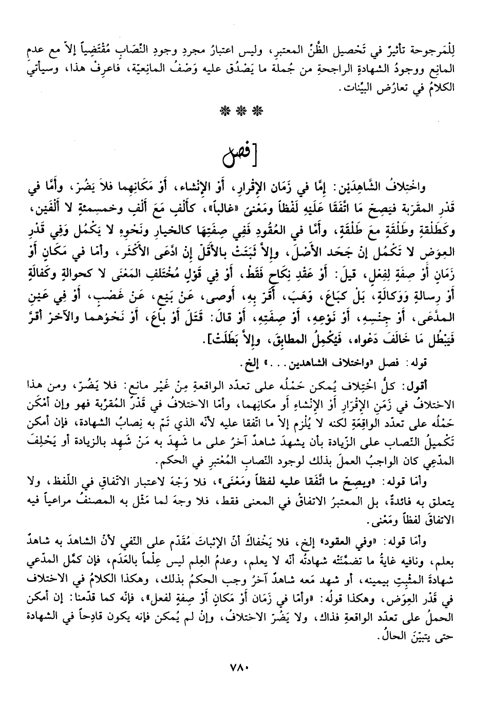 قوله: "فصل: واختلاف الشاهدين" الخ.