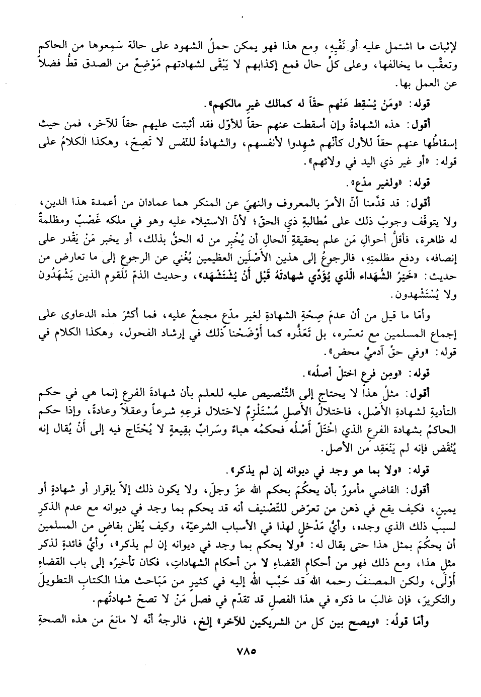 أقول: مثل هذا لا يحتاج إلى التنصيص عليه للعلم بأن شهادة الفرع إنما هي في حكم التأدية لشهادة الأصل فاختلال الأصل مستلزم لاختلال فرعه شرعا وعقلا وعادة وإذا حكم الحاكم بشهادة الفرع الذي اختل أصله فحكمه هباء وسراب بقيعة لا يحتاج فيه إلى أن يقال إنه ينقض فإنه لم ينعقد من الأصل.