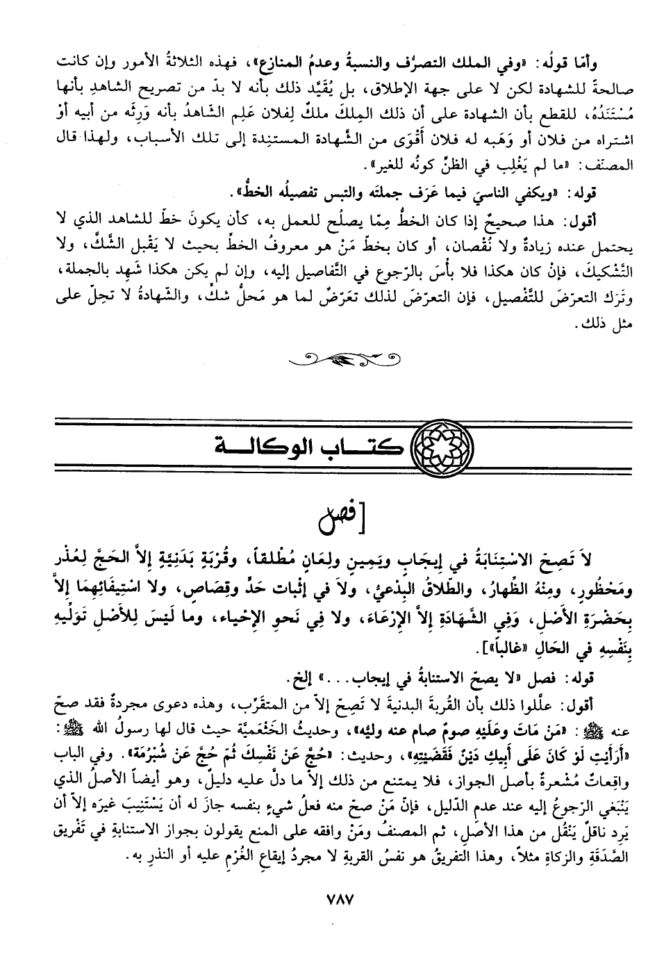 أقول: هذا صحيح إذا كان الخط مما يصلح للعمل به كأن يكون خطا للشاهد الذي لا يحتمل عنده زيادة ولا نقصان أو كان بخط من هو معروف الخط بحيث لا يقبل الشك ولا التشكيك فإن كان هكذا فلا بأس بالرجوع في التفاصيل إليه وإن لم يكن هكذا شهد بالجملة وترك التعرض للتفصيل فإن التعرض لذلك تعرض لما هو محل شك والشهادة لا تحل على مثل ذلك.