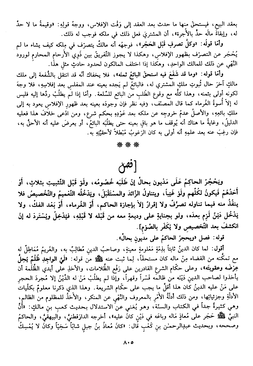 قوله: "فصل: ويحجر الحاكم على مديون بحال".