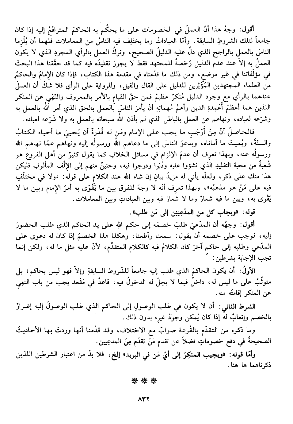 الأول: أن يكون الذي طلب إليه جامعا للشروط السابقة وإلا فهو ليس بحاكم بل متوثب على ما ليس له داخل فيما لا يحل له الدخول فيه قاعد في مقعد يجب من باب النهي عن المنكر إقامته منه.