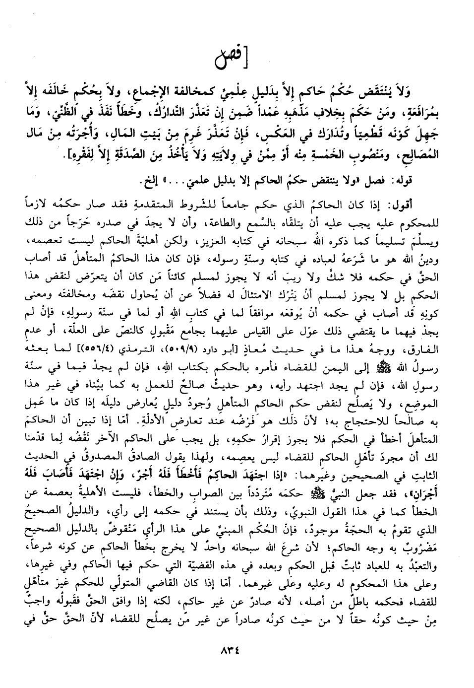 قوله: "فصل: ولا ينتقص حكم حاكم إلا بدليل علمي" الخ.