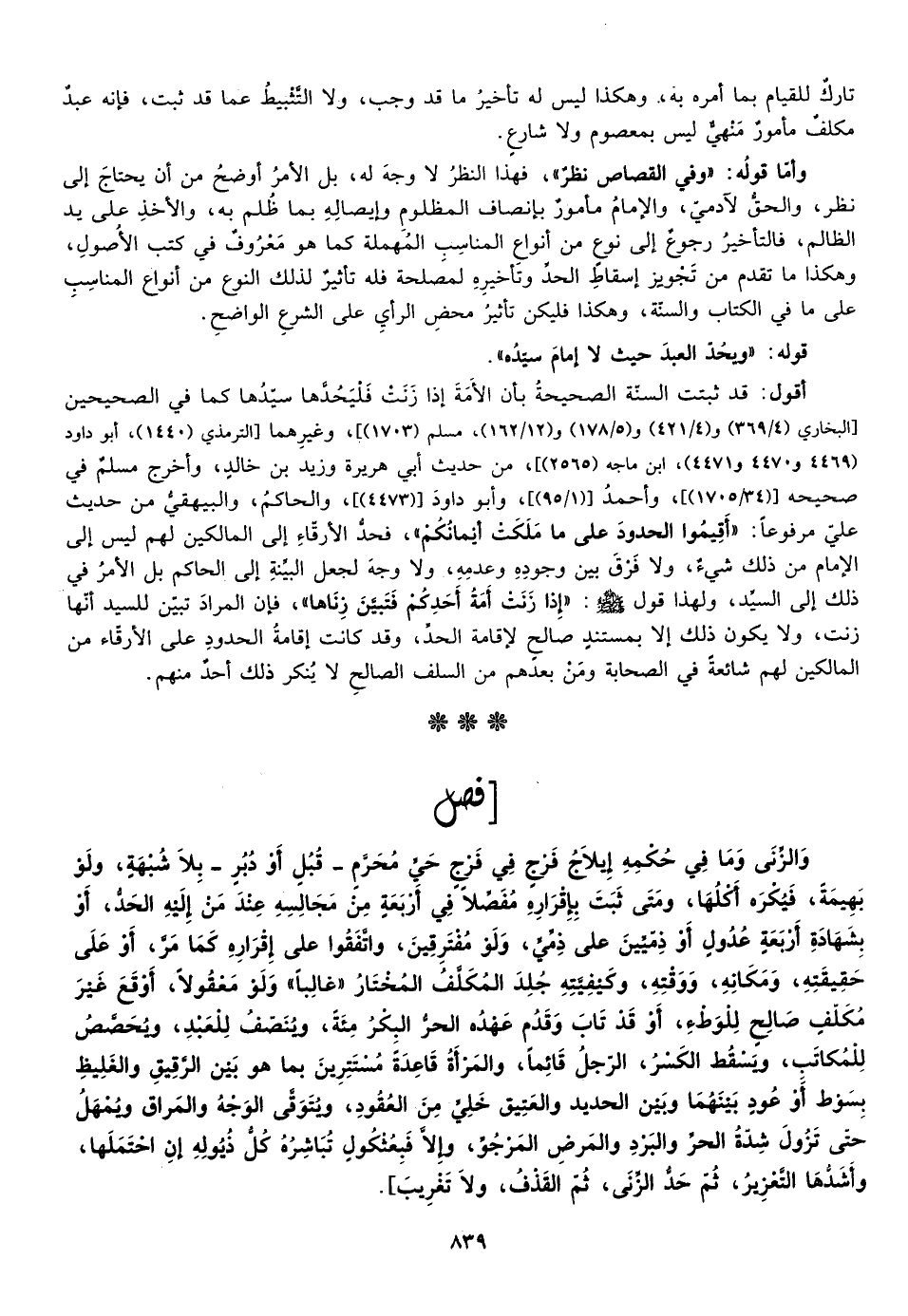 أقول: قد ثبت السنة الصحيحة بأن الأمة إذا زنت فليحدها سيدها كما في الصحيحين [البخاري "4/369، 4/421، 5/178، 12/162"، مسلم "1703"] ، وغيرهما [الترمذي "1440"، أبو داود "4469، 4470، 4471"، ابن ماجة 2565"] ، من حديث أبي هريرة وزيد بن خالد وأخرج مسلم في صحيحه "34/1705"، وأحمد "1/95"، وأبو داود "4473"، والحاكم والبيهقي من حديث علي مرفوعا: "أقيموا الحدود على ما ملكت أيمانكم"، فحد الأرقاء إلى المالكين لهم ليس إلى الأمام من ذلك شيء ولا فرق بين وجوده وعدمه ولا وجه لجعل البينة إلى الحاكم بل الأمر في ذلك إلى السيد ولهذا يقول صلى الله عليه وسلم: "إذا زنت أمة أحدكم فتبين زناها"، فإن المراد تبين للسيد أنها زنت ولا يكون ذلك إلا بمستند صالح لإقامة الحد وقد كانت إقامة الحدود على الأرقاء من المالكين لهم شائعة في الصحابة ومن بعدهم من السلف الصالح لا ينكر ذلك أحد منهم.