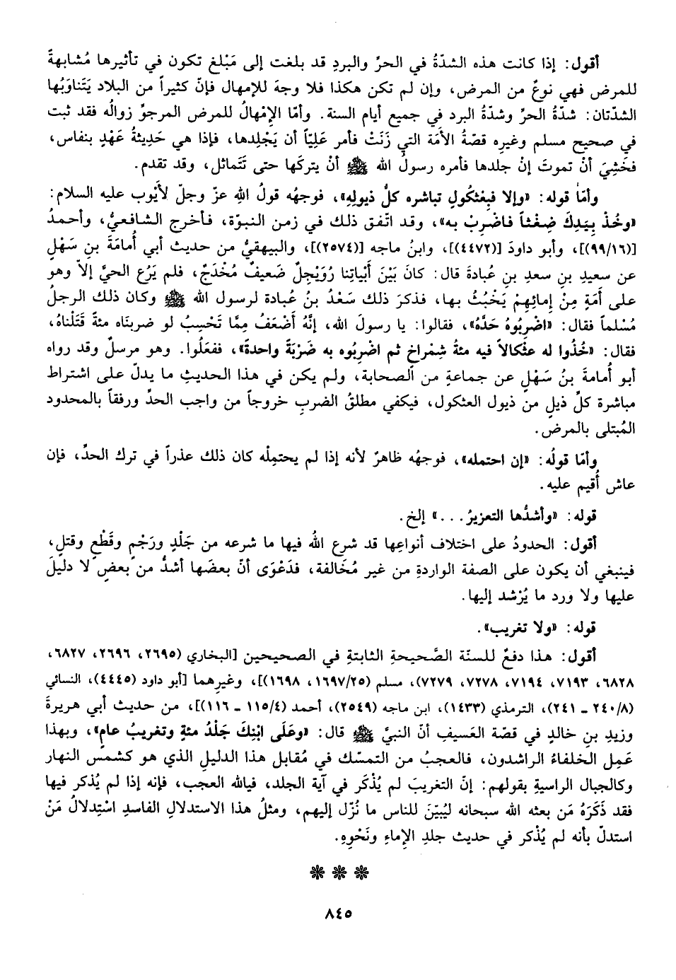 أقول: إذا كانت هذه الشدة في الحر والبرد قد بلغت إلى مبلغ يكون في تأثيرها مشابهة للمرض فهي نوع من المرض وإن لم تكن هكذا فلا وجه للإمهال فإن كثيرا من البلاد يتناوبها الشدتان شدة الحر وشدة البرد في جميع أيام السنة وأما الإمهال للمرض المرجو زواله فقد ثبت في صحيح مسلم وغيره قصة الأمة التي زنت فأمر عليا أن يجلدها فإذا هي حديثة عهد بنفاس فخشي أن تموت إن جلدها فأمره رسول الله صلى الله عليه وآله وسلم أن يتركها حتى تتماثل وقد تقدم.