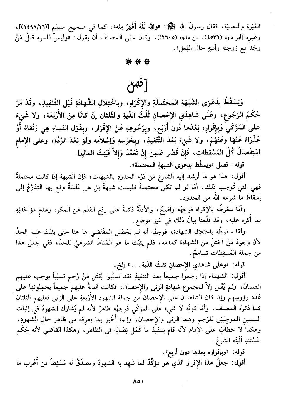 قوله: "فصل: ويسقط بدعوى الشبهة المحتملة".