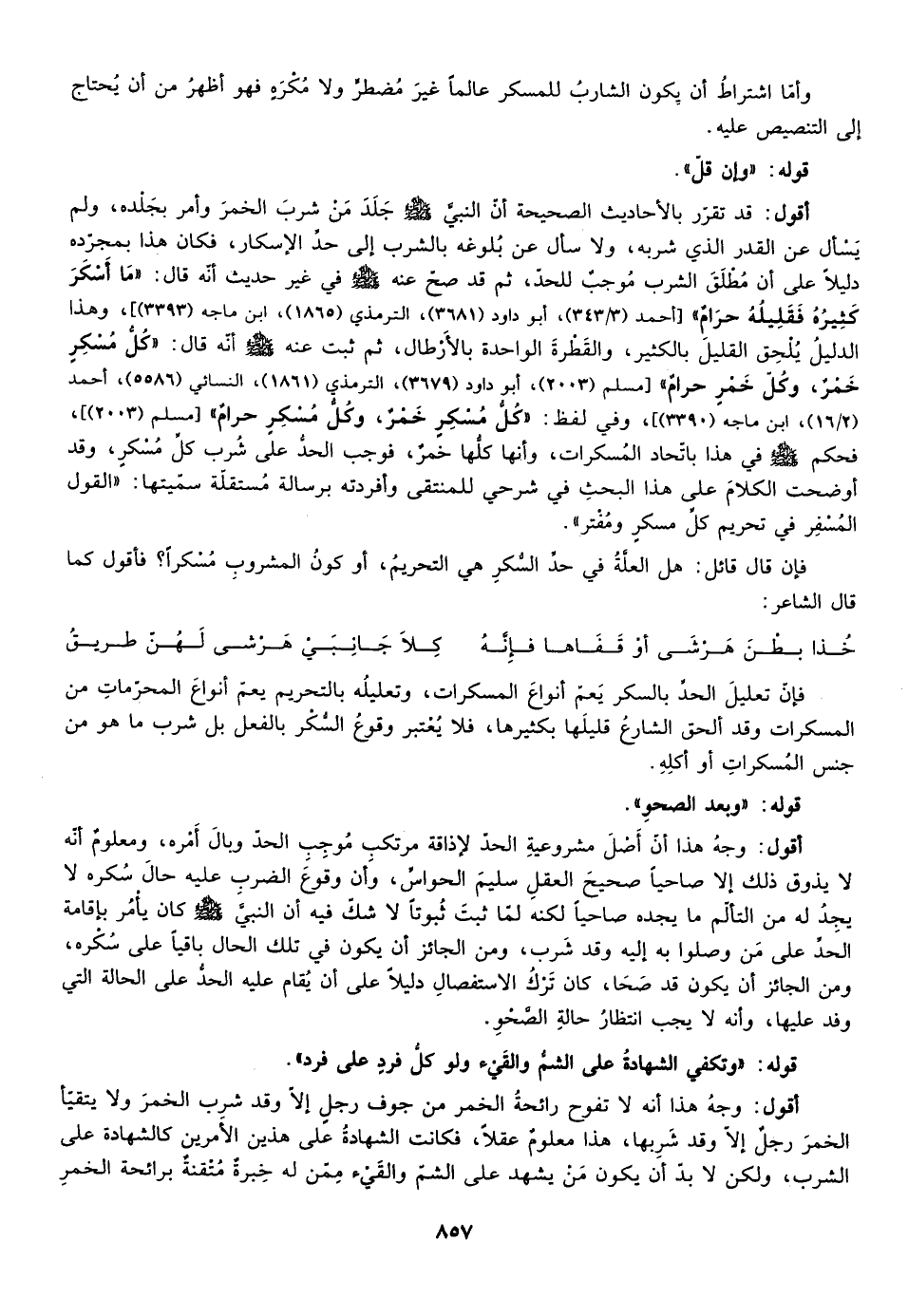 أقول: قد تقرر بالأحاديث الصحيحة أن النبي صلى الله عليه وسلم جلد من شرب الخمر وأمر بجلده ولم يسأل عن القدر الذي شربه ولا سأل عن بلوغه بالشرب إلى حد السكر فكان هذا بمجرده دليلا على أن مطلق الشرب موجب للحد ثم قد صح عنه صلى الله عليه وسلم في غير حديث أنه قال: "ما أسكر كثيره فقليله حرام" [أحمد "3/343"، أبو داود "3681"، الترمذي "1865"، ابن ماجة "3393"] ، وهذا الدليل يلحق القليل بالكثير والقطرة الواحدة بالأرطال ثم ثبت عنه صلى الله عليه وسلم أنه قال: "كل مسكر خمر وكل خمر حرام"، وفي لفظ: "كل مسكر خمر وكل مسكر حرام"، [مسلم "2003"] ، فحكم صلى الله عليه وسلم في هذا باتحاد المسكرات وأنها كلها خمر فوجب الحد على شرب كل مسكر وقد أوضحت الكلام على هذا البحث في شرح المنتقى وأفردته برسالة مستقلة سميتها القول المسفر في تحريم كل مسكر ومفتر.