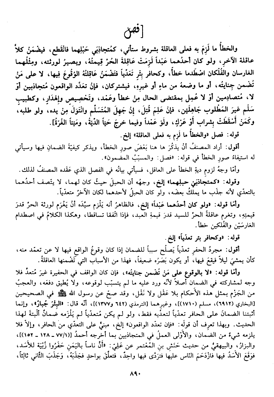 أقول: أراد المصنف أن يذكر هاهنا بعض صور الخطأ ويذكر كيفية الضمان فيها وسيأتي له استيفاء صور الخطأ في قوله فصل والمسبب المضمون.
