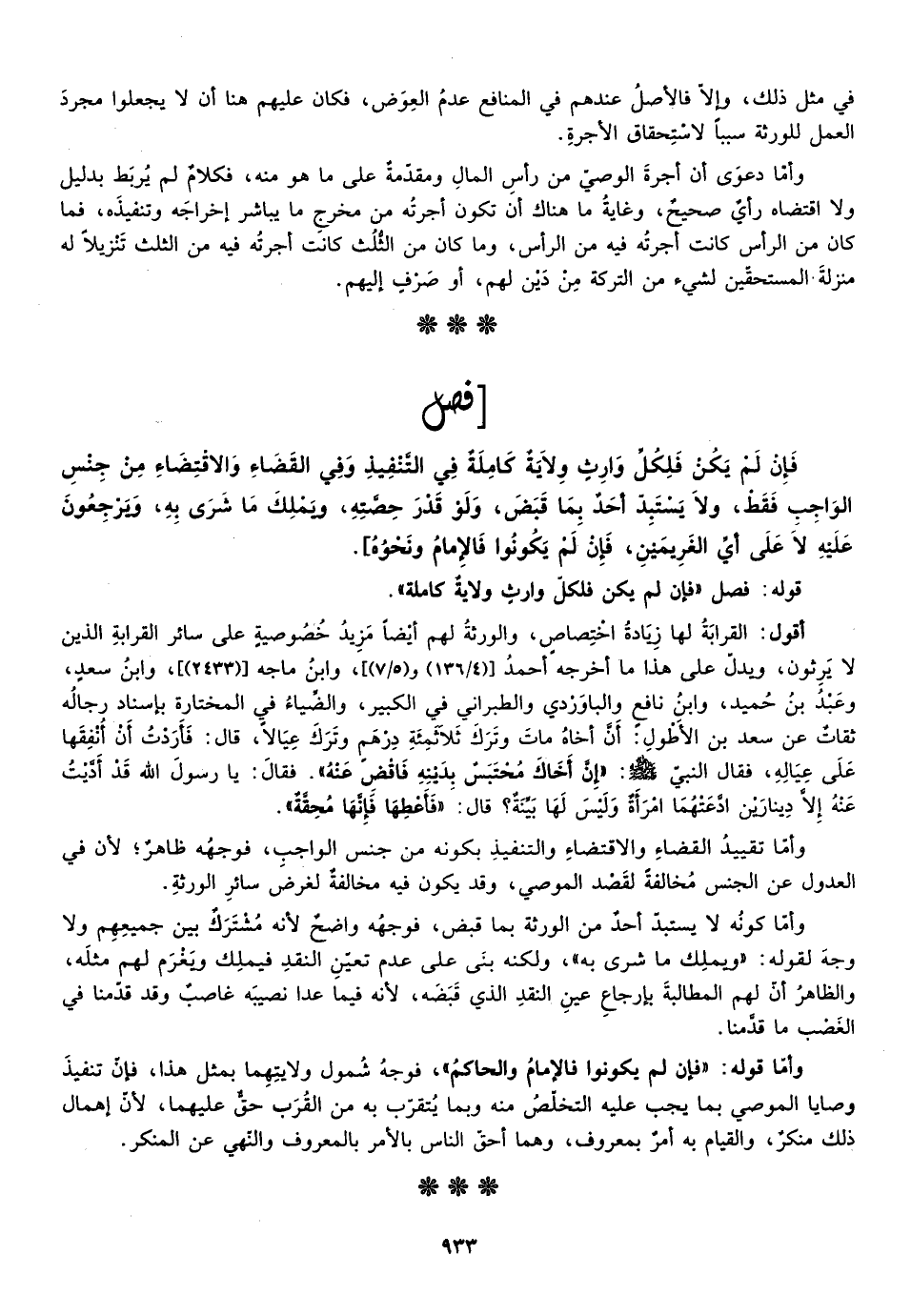 وأما دعوى أن أجرة الوصي من رأس المال ومقدمة على ما هو منه فكلام لم يربط بدليل ولا اقتضاه رأي صحيح وغاية ما هناك أن تكون أجرته من مخرج ما يباشر إخراجه وتنفيذه فما كان من الرأس كانت أجرته فيه من الرأس وما كان من الثلث كانت أجرته فيه من الثلث تنزيلا له منزلة المستحقين لشيء من التركة من دين لهم أو صرف إليهم.