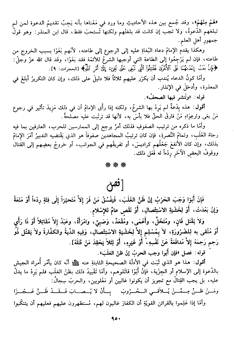 قوله: "فصل: فإن أبوا وجب الحرب إن ظن الغلب".