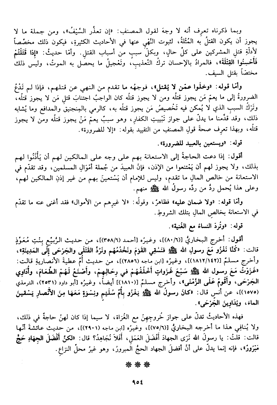 أقول: إذا دعت الحاجة إلى الاستعانة بهم وجب على المالكين لهم أن يأذنوا لهم بذلك ولا يجوز لهم أن يمتنعوا من الإذن فإن العبيد من جملة أموال المسلمين وقد تقدم في الاستعانة من خالص المال ما تقدم وليس للإمام أن يستعين بهم من غير إذن المالكين لهم وعلى هذا يحمل رد من رده رسول الله صلى الله عليه وسلم منهم.