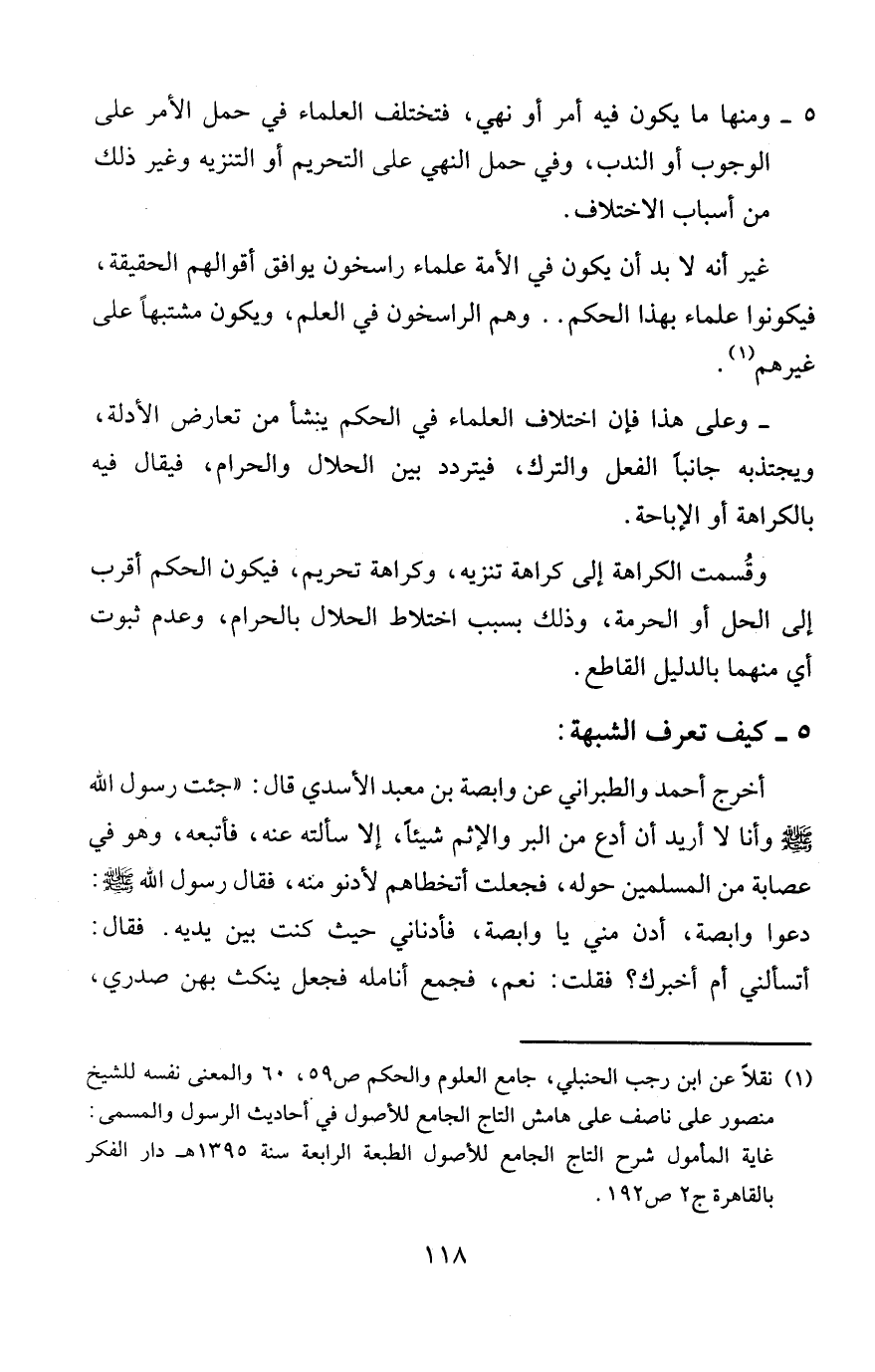 (¬1) نقلاً عن ابن الحنبلي، جامع العلوم والحكم ص 59، 60 والمعنى نفسه للشيخ منصور على ناصف على هامش التاج الجامع للأصول في أحاديث الرسول والمسمى: غاية المأمول شرح التاج الجامع للأصول الطبعة الرابعة سنة 1395 هـ دار الفكر بالقاهرة ج 2 ص 192.