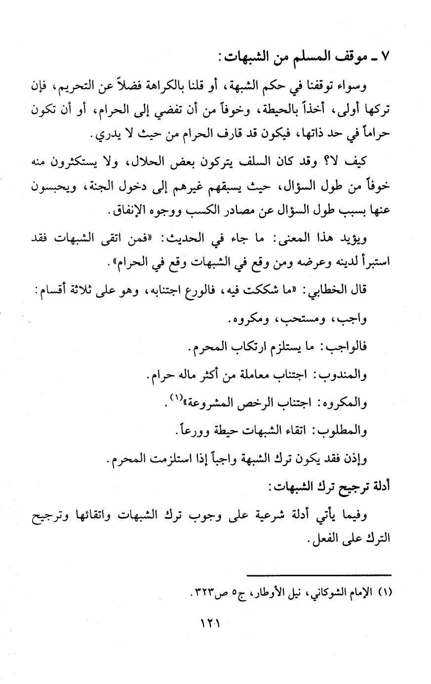 وإذن فقد يكون ترك الشبهة واجبًا إذا استلزمت المحرم.