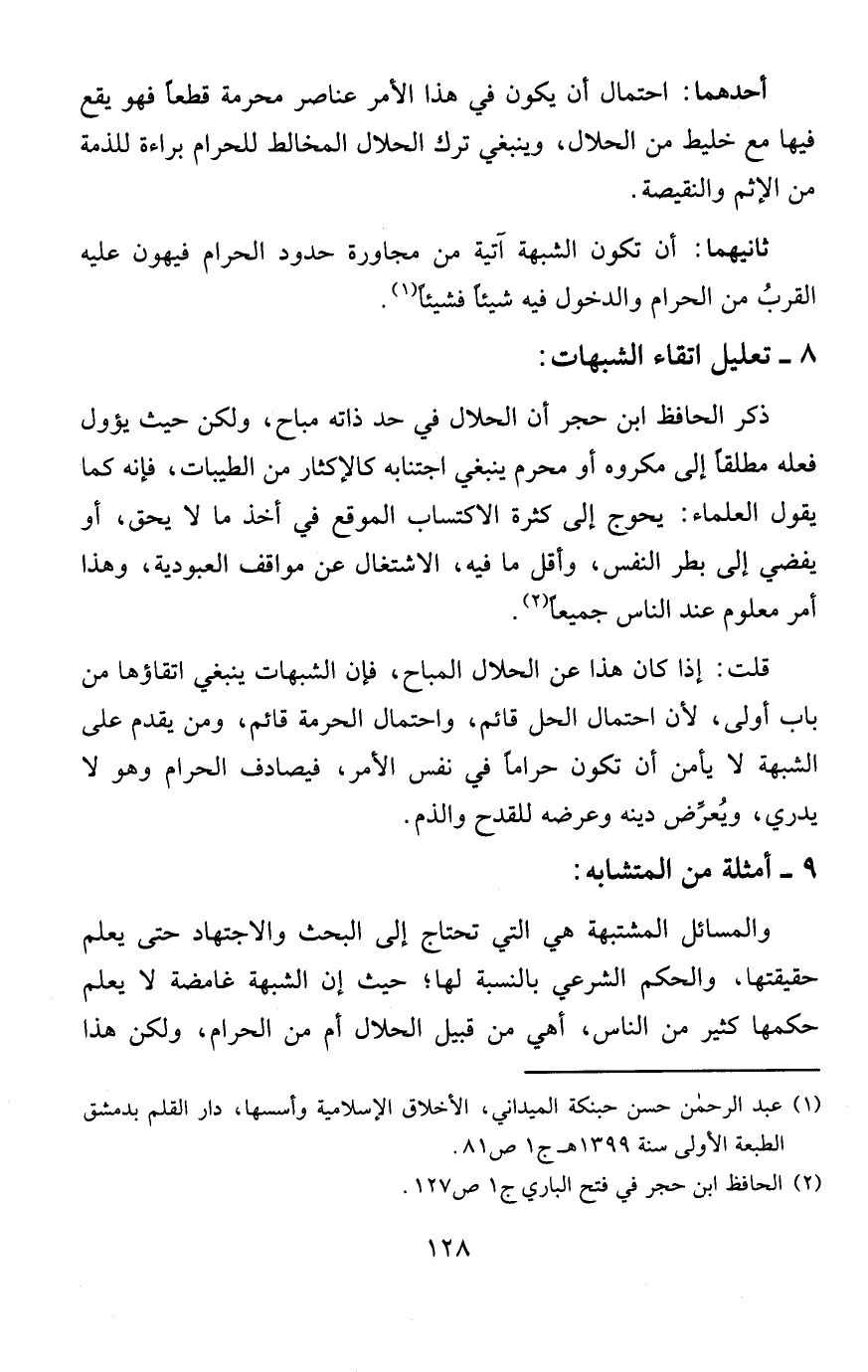 (¬1) عبد الرحمن حسن حبنكة الميداني، الأخلاق الإسلامية وأسسها، دار القلم بدمشق الطبعة الأولى سنة 1399 هـ ج 1 ص 81.