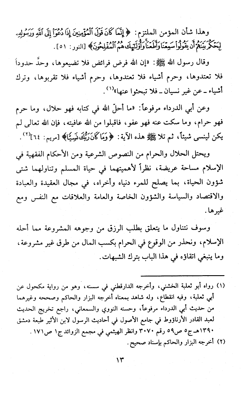 ويحتل الحلال والحرام من النصوص الشرعية ومن الأحكام الفقهية في الإسلام مساحة عريضة، نظراً لأهميتهما في حياة المسلم وتناولهما شتى شؤون الحياة، بما يصلح للمرء دنياه وأخراه، في مجال العقيدة والعبادة والاقتصاد والسياسة والشؤون الخاصة والعامة والعلاقات مع النفس ومع غيرهما.