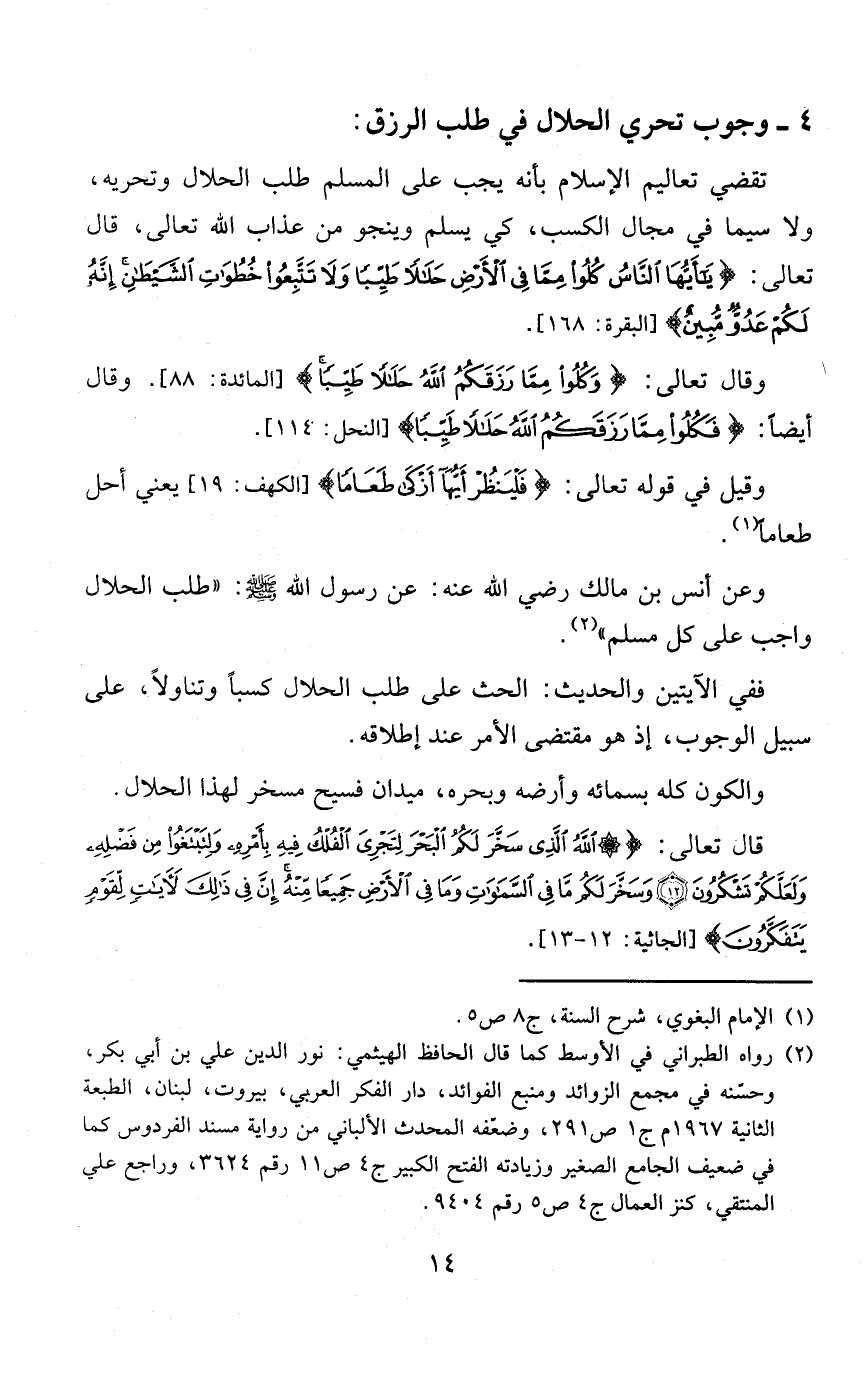 4 - وجوب تحري الحلال في طلب الرزق:
