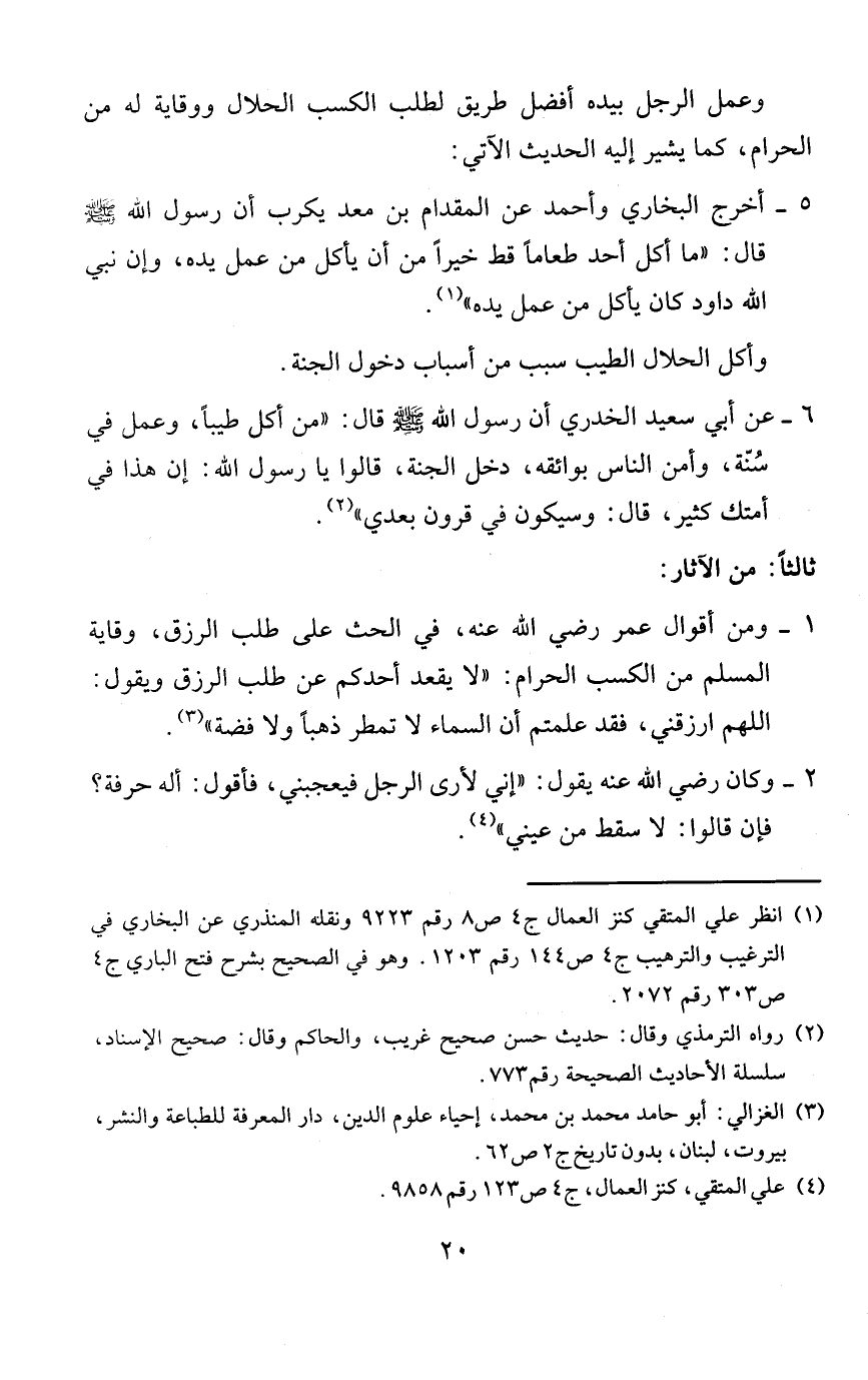 وعمل الرجل بيده أفضل طريق لطلب الكسب الحلال ووقاية له من الحرام، كما يشير إليه الحديث الآتي: