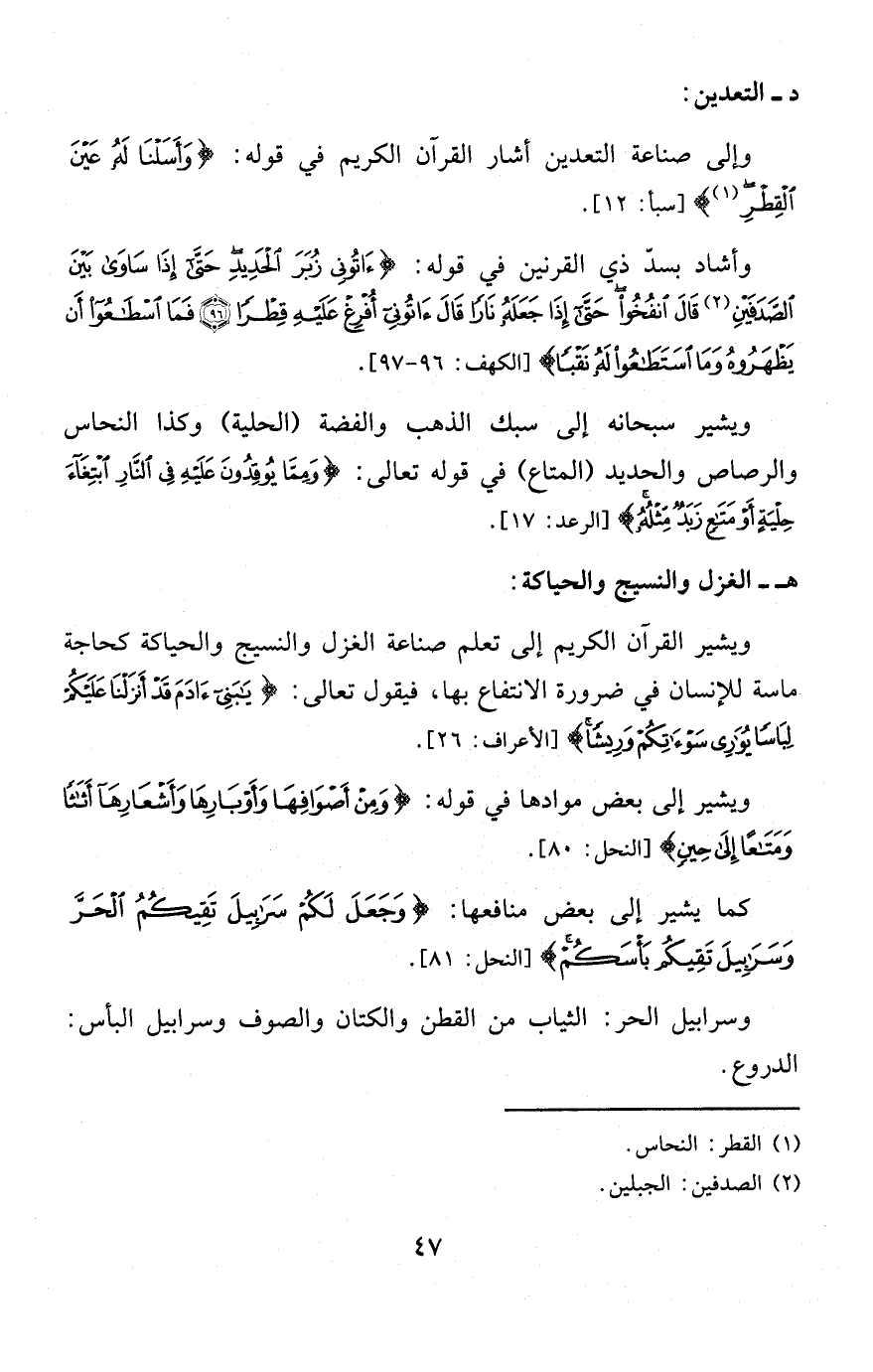 وإلى صناعة التعدين أشار القرآن الكريم في قوله: {وَأَسَلْنَا لَهُ عَيْنَ الْقِطْرِ (¬1)} [سبأ: 12].