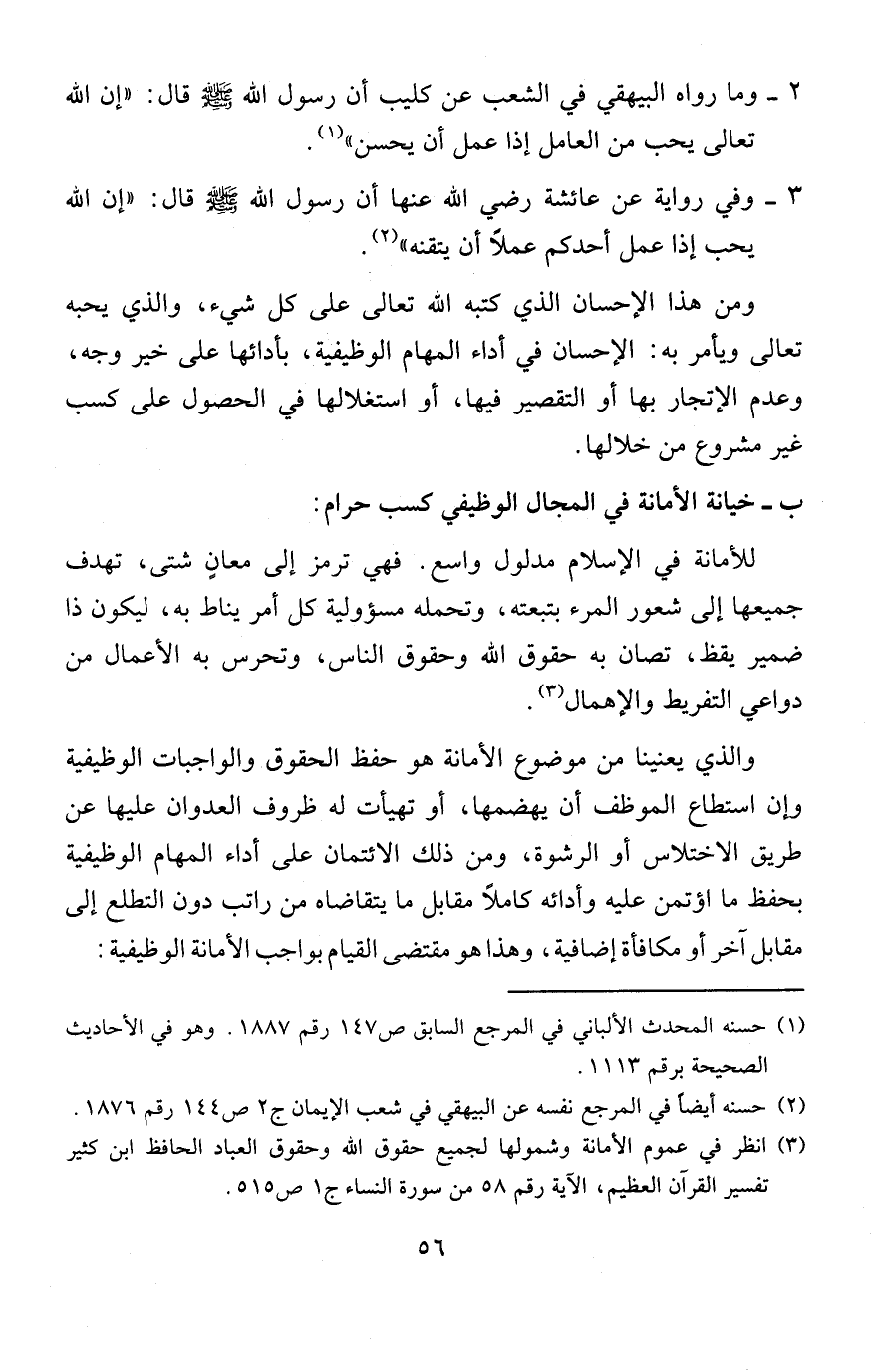 (¬3) انظر في عموم الأمانة وشمولها لجميع حقوق الله وحقوق العباد الحافظ ابن كثير تفسير القرآن العظيم، الآية رقم 58 من سورة النساء ج 1 ص 515.