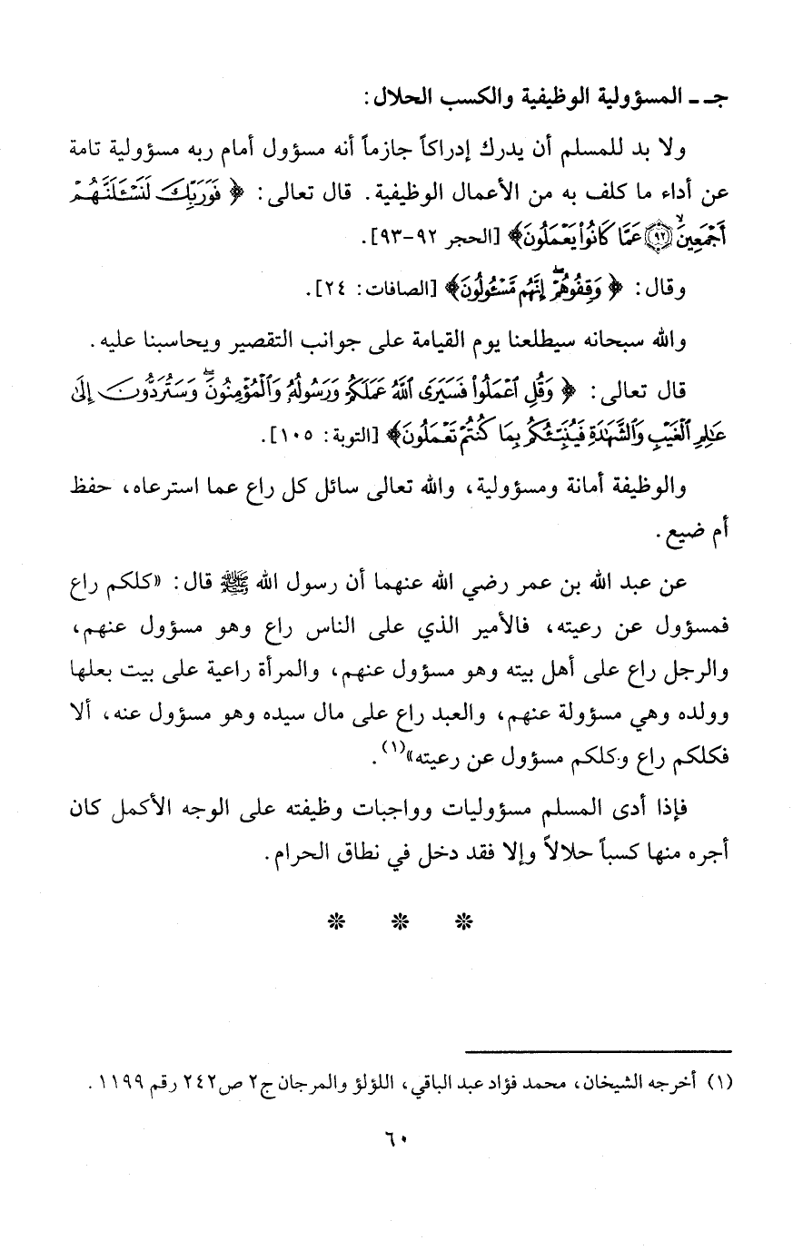 فإذا أدى المسلم مسؤوليات وواجبات وظيفته على الوجه الأكمل كان أجره منها كسباً حلالاً وإلا فقد دخل في نطاق الحرام.